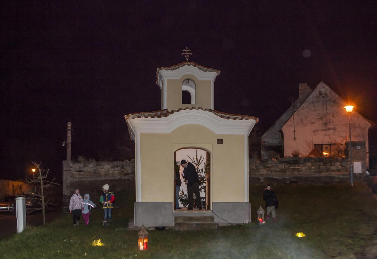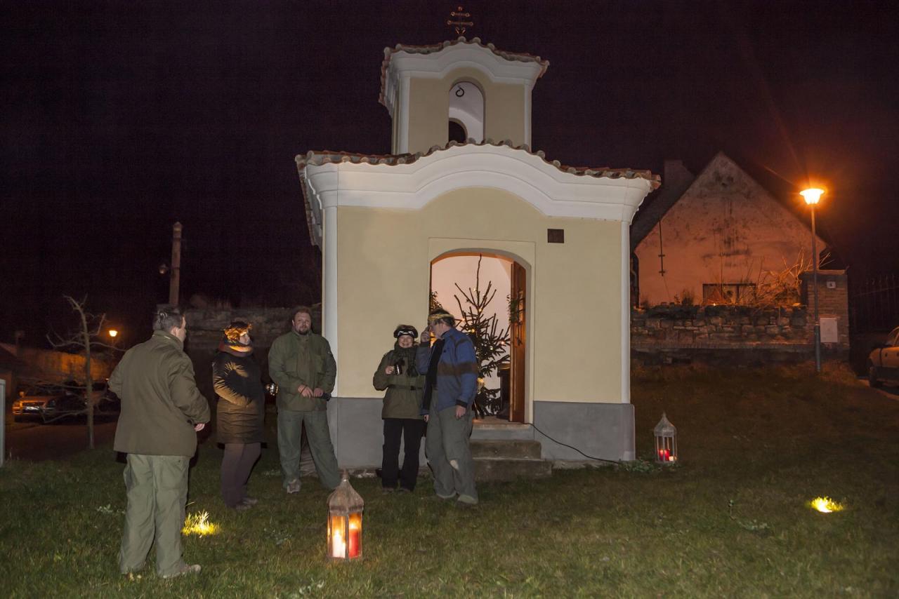 Historická náves v obci Saky se stala o letošní půlnoci po Štědrém večeru místem setkání desítek lidí zejména z Třebichovic, Hrdlíva a Pcher. Barokní kaplička, která dominuje zdejší návsi, byla vánočně vyzdobena a ozářena světlem svící z ručně kovaného svícnu z dílny zdejšího kováře Stanislava Rovného. Příchozí mohli nabírat teplé nápoje z nádob, pod kterými plápolal oheň, který také osvětloval na mnoha místech celé prostranství. Zpívaly se vánoční koledy v doprovodu kláves a strun, vše v režii pana Radka Bláhy, kterému jako poděkování za všechny přítomné předala paní starostka čokoládovou repliku kapličky. Hvězdné nebe a ztichlá krajina byly magickou kulisou tohoto milého setkání lidí, kteří přišli a okusili trochu z mystéria Vánoc. Text: mj Foto: Klubko 55, Milan Petriščák